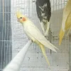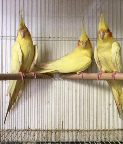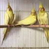 The lutino cockatiel is one of the most popular mutations of cockatiel, with white to light-yellow feathers and orange cheek patches.